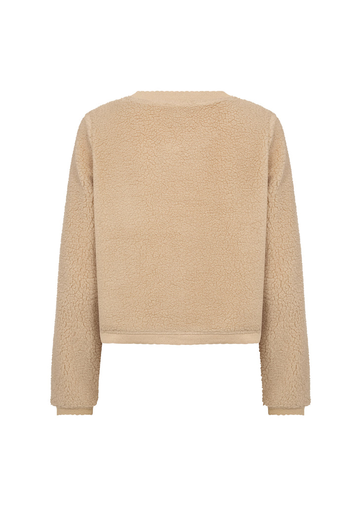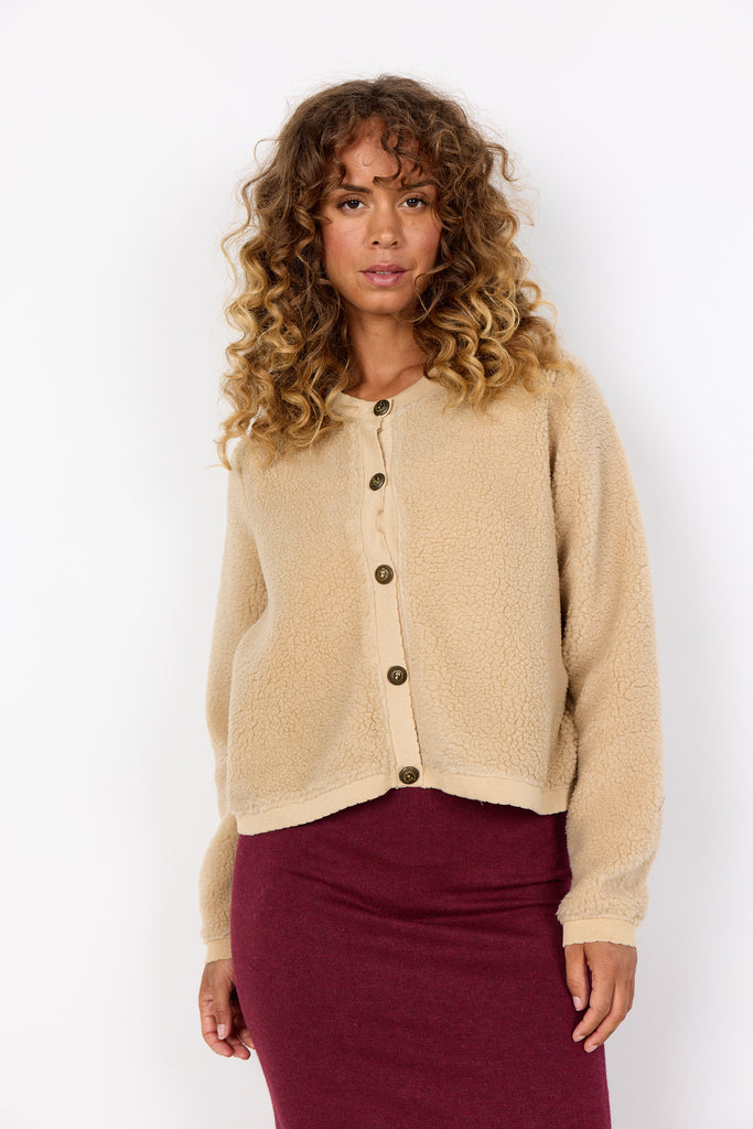 Soya Concept Onyx 7 Jacket in Sand 27343 Beige sherpa jacket with button details on a white background