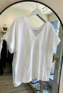 Basic t-shirt with a boxy fit, short sleeves and a v-neckline.