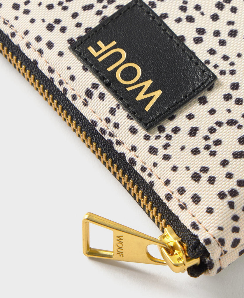 The Wouf Panna Wallet combines practical design with environmental responsibility. Crafted from 100% recycled polyester sourced from post-consumer plastic bottles, this compact wallet measures 13 x 9 x 1 cm and features water-repellent finishing to protect your essentials. The design includes a recycled leather label, dedicated card slot, and signature Wouf aluminium puller, secured with a durable YKK zip with recycled polyester sides. Printed using Oeko-Tex® certified inks and handcrafted in Spain, it represents a thoughtful choice for conscious consumers. Hand wash in cold water with neutral soap to maintain its quality.