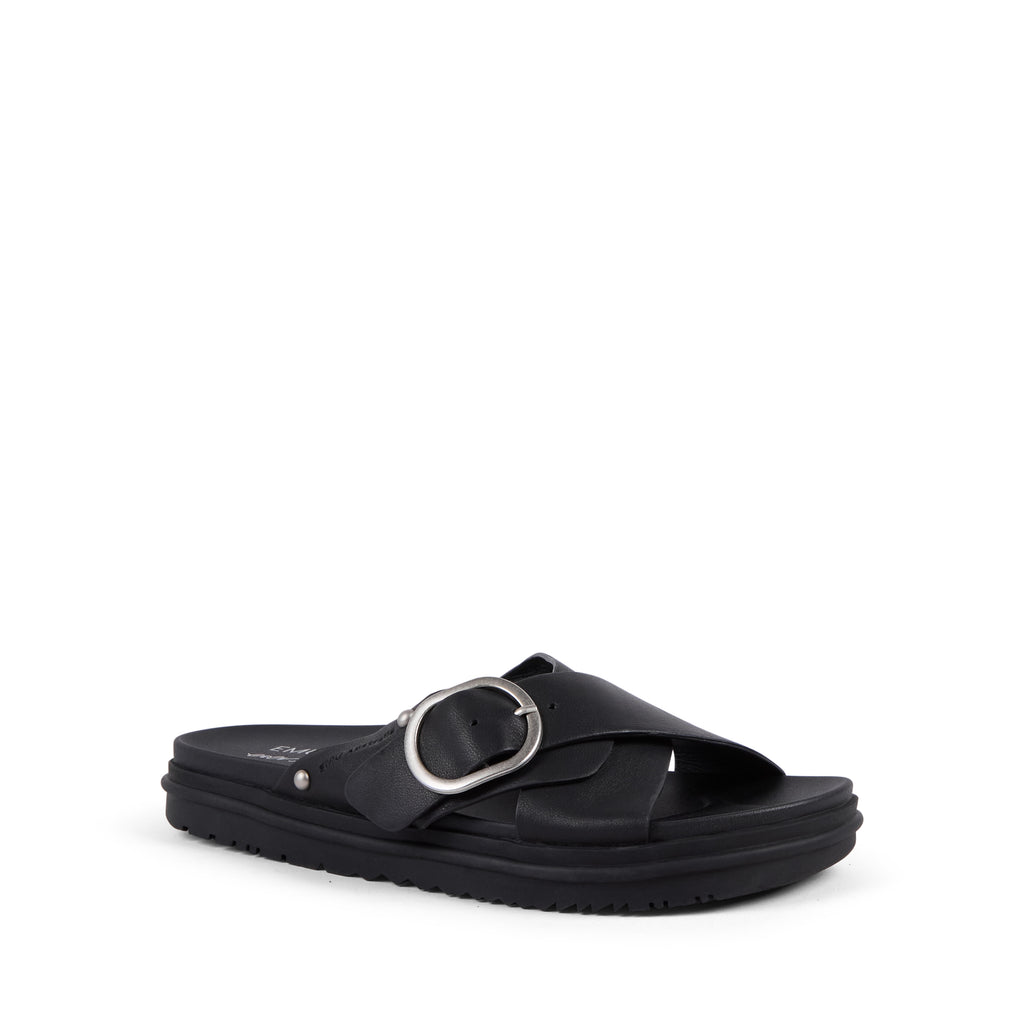 A sandal that makes every step feel easy. Crafted from supple leather with a matching leather lining, it features a crossover strap design with a side buckle for subtle detail. The backing-free, slide-on style keeps things simple, while the soft footbed and durable sole ensure comfort wherever your day takes you. Understated and versatile, it’s a sandal you’ll reach for again and again.