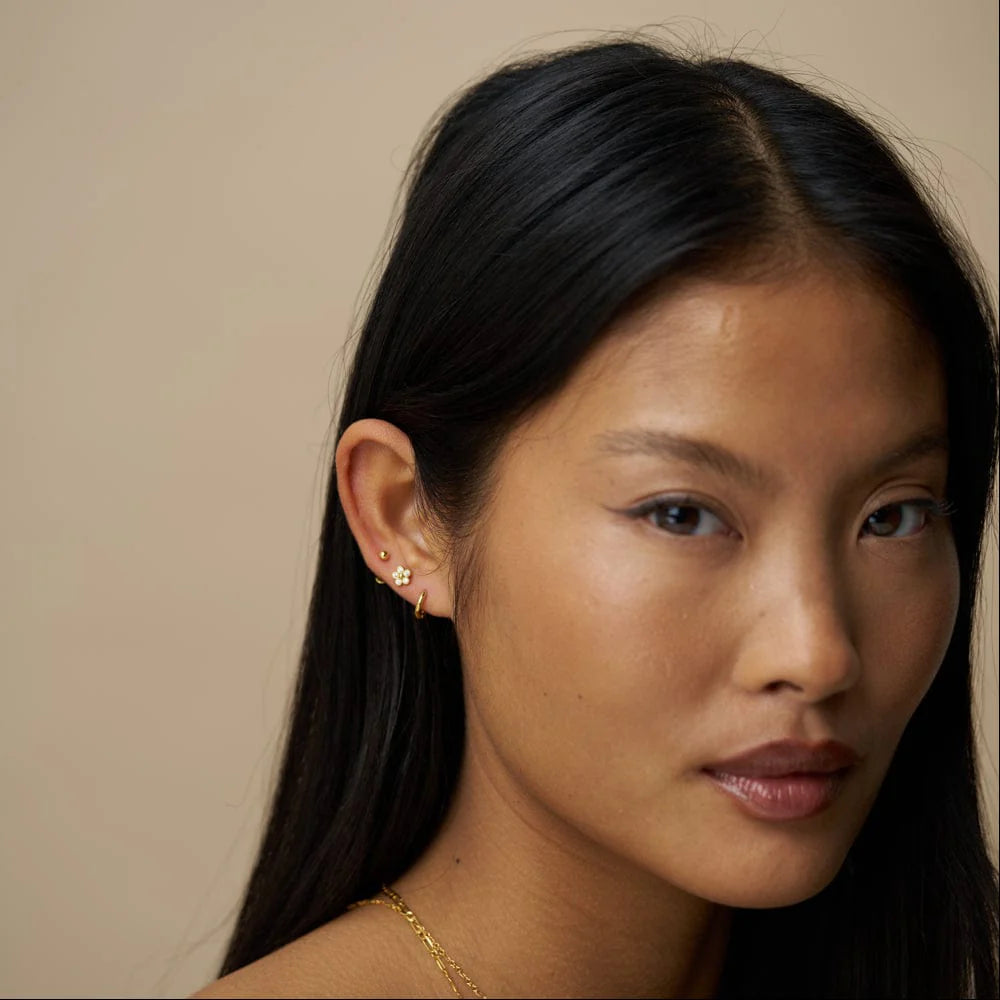 Embrace the season with this charming three-piece ear stacking set. Featuring a polished ball stud, delicate micro hoop, and sparkling crystal daisy stud, each pair is thoughtfully curated to work beautifully together or worn individually. Perfect for layering or mixing and matching, this spring-inspired collection brings understated elegance to your everyday look.