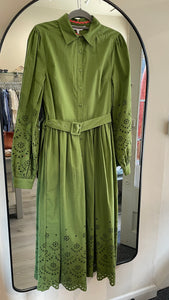 Elevate your wardrobe with the One Collective Florence Broderie Dress in Cedar Green. Made from high-quality cotton, this dress features intricate broderie detailing and a stylish belted shirt design. Perfect for any occasion, this dress offers a timeless and elegant look.