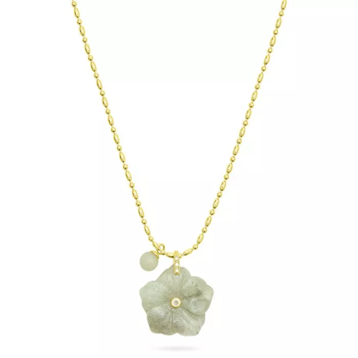 Delicate yet distinctive, the Flower Pendant Necklace is crafted with Labradorite that brings natural colour and quiet elegance to your everyday look. Inspired by the freshness of spring and the warmth of summer, the flower motif captures a sense of effortless femininity.