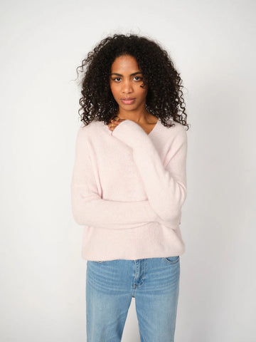 Jumper 1234 Contrast Lurex Rib Crew in Rosebud