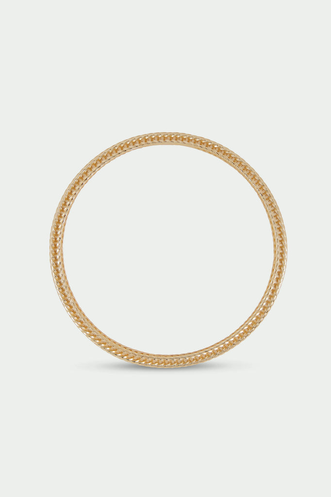 Crafted with meticulous attention to detail, this Tutti Woven Bangle showcases an intricate woven texture that catches the light beautifully. Designed with versatility in mind, wear it as a standalone statement piece or layer multiple bangles for a curated, personalised look. The refined proportions—6.3cm inner diameter and 0.33cm height—ensure a comfortable, elegant fit that complements any wrist. A timeless addition to your jewellery collection.
