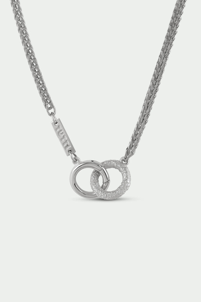 The Tutti Woven Necklace in Gold features an expertly crafted woven chain that combines refined elegance with practical versatility. A concealed clasp integrated into the pendant allows you to wear this piece with the focal point positioned at the front or reversed at the back, adapting effortlessly to your styling preferences. At 45cm in length, it offers a sophisticated drape suitable for layering or wearing as a standalone statement. The woven construction provides both durability and a distinctive textural quality that elevates any jewellery collection.
