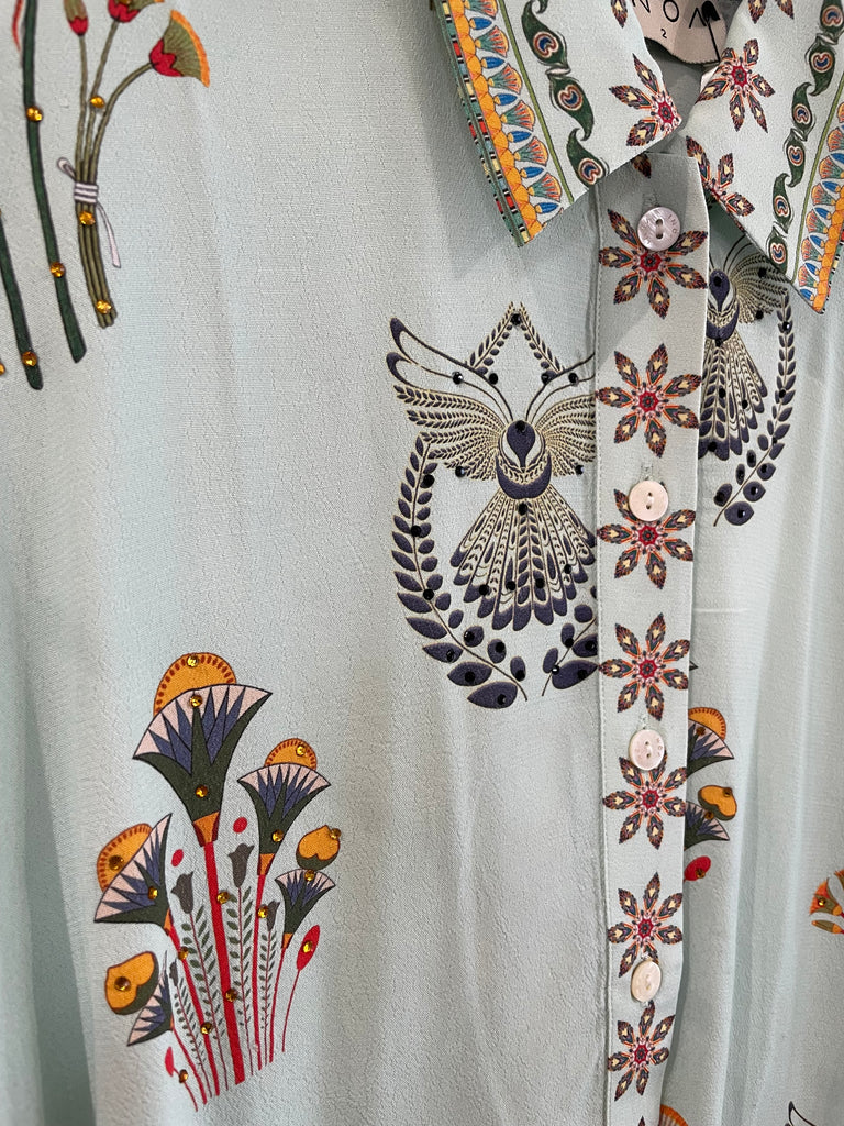 Featuring a soft collared neckline, button-down front, and relaxed 3/4 sleeves for an easy, breezy silhouette. You'll adore how luxurious this feels—it's crafted from pure, flowing 100% silk. The gentle drape and natural sheen create an effortlessly elegant piece that transitions seamlessly from day to evening wear.