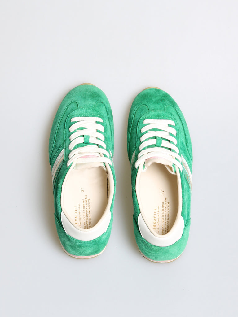The honey gum sole with a serrated tread ensures grip and maintains the model's old-school charm. A sneaker with a decisive yet versatile personality, ideal for those who love to stand out with elegance. Perfect for pairing with a casual-chic linen look or giving a jolt of colour to a neutral-toned urban outfit.