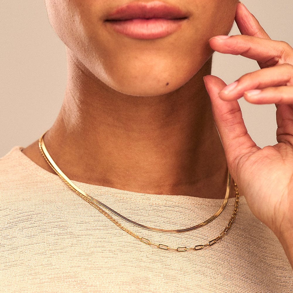 Elevate your jewellery collection with this timeless Orelia Flat Snake Chain Necklace. The sleek 15" design strikes the perfect balance—wear it solo for understated elegance or layer it with other pieces for a curated, modern look. The signature flat snake chain in gold is a versatile essential that complements any style, from casual everyday wear to special occasions. A classic piece that never goes out of fashion.