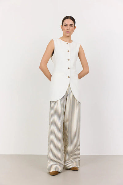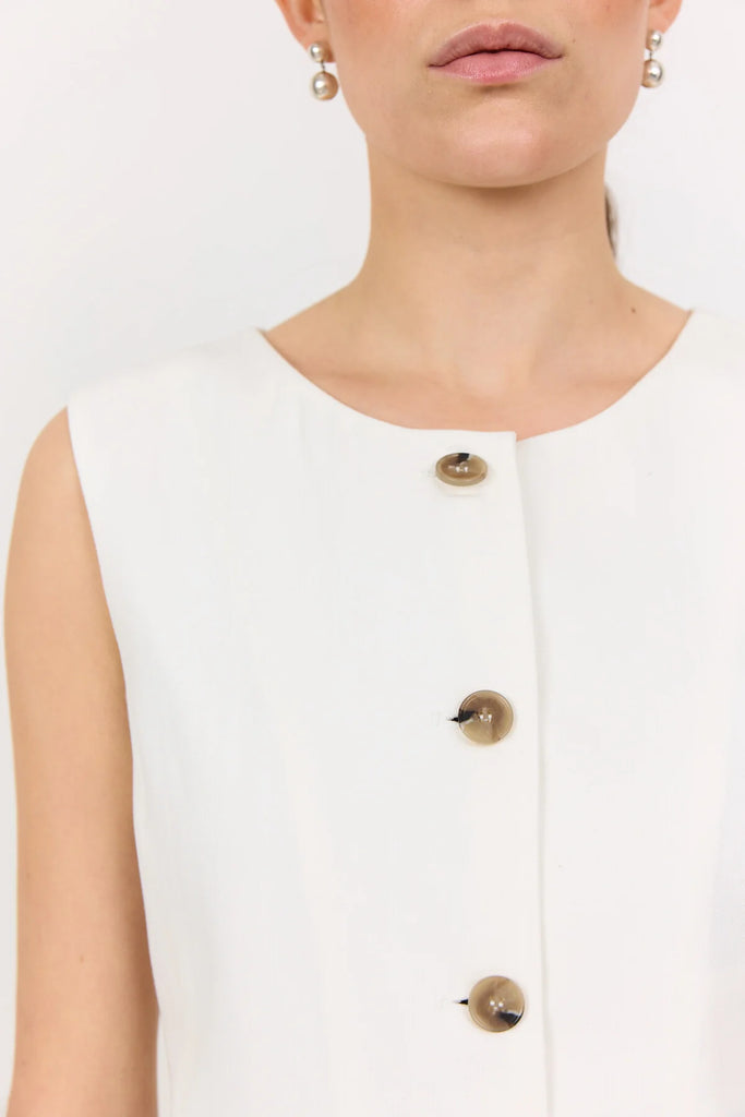 Elevate your professional style with LR-LAURA 2, a sleek waistcoat crafted from a blend of 60% cotton and 40% tencel. Its slim fit, round neckline, button closure, and pockets make for a polished look. Perfectly paired with tailored trousers and a crisp shirt.